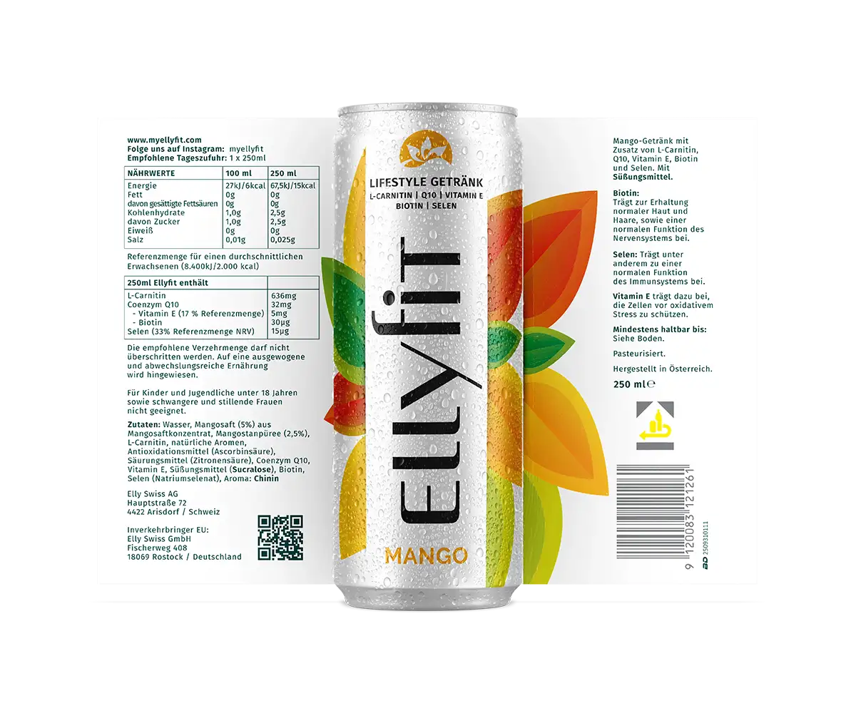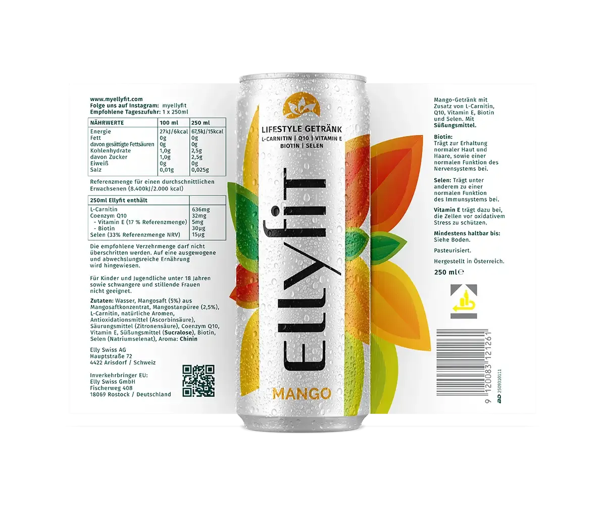 Mit Ellyfit genießt du die frische Leichtigkeit sonnengereifter Mangos – und gibst deinem Körper gleichzeitig etwas zurück: Selen und Biotin unterstützen dein Immunsystem und können die Hautregeneration positiv begleiten. Der sorgfältig komponierte Genuss liefert dir außerdem Aminosäuren und wertvolle Antioxidantien – für einen nachhaltigen Energy-Boost, der dich spürbar durch den Tag trägt. Ellyfit begleitet dich aktiv auf deinem persönlichen Weg zu mehr Wohlbefinden und Vitalität.